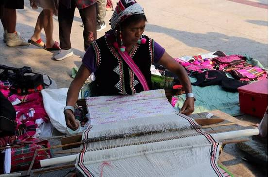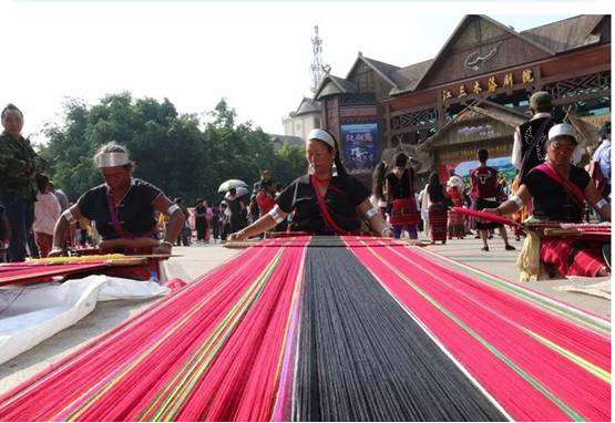 織錦是各民族生活中不可缺的勞作。紡線(xiàn)原料以棉纖維和麻纖維為主。 棉主要是草棉、白棉沙線(xiàn)、黑棉沙線(xiàn)、紅棉沙線(xiàn),麻主要為苧麻和野生火麻。在織錦的過(guò)程中,婦女端坐在紡車(chē)前,凝神專(zhuān)注地操持著手中的活計(jì)。 織一匹布大約需要20天至一個(gè)月左右的時(shí)間。