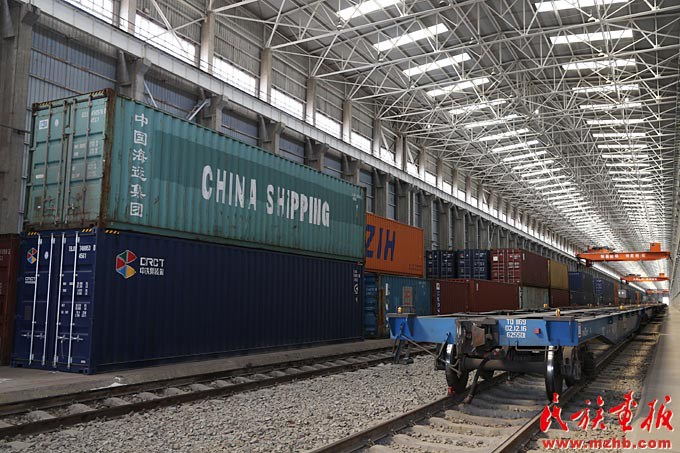 阿拉山口口岸有亞洲最大的“全天候”室內(nèi)集裝箱換裝場,年換裝能力20萬標(biāo)箱(滕俊 攝影)