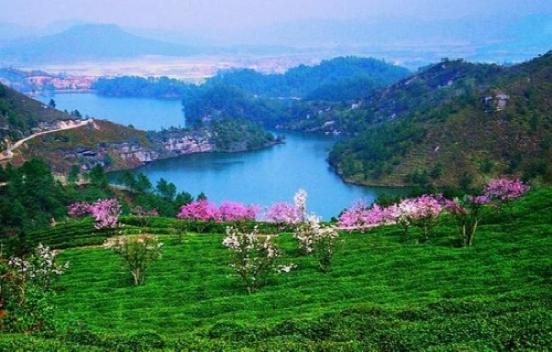 云霧湖三面環(huán)山,山間草木茂盛、綠樹成蔭;山上萬(wàn)畝茶園層巒疊翠,清風(fēng)吹來(lái),茶香四溢;山腳湖水清澈,泛舟過處,碧波蕩漾。云霧湖風(fēng)景美不勝收,是休閑旅游的好去處。