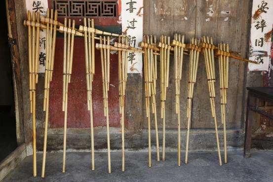 就這樣年復(fù)一年的干活,后來因?yàn)榇蠹夷挲g大了,干活賣力糧食也豐收了。大哥就想,現(xiàn)在能吃飽了,要讓大家有個(gè)玩的地方和玩的工具。想去想來,他用家里面的葫蘆,把笙管插進(jìn)去,一吹又是有一種味道。所以大哥就把竹管插進(jìn)葫蘆里面,把聲音通過仔細(xì)調(diào)音制出了蘆笙,六個(gè)聲音當(dāng)時(shí)叫做六笙,后來才叫做蘆笙。