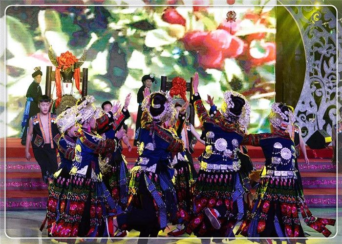 中國(guó)苗族網(wǎng)訊 2019年1月19日,由貴州省社科聯(lián)、貴州民族大學(xué)指導(dǎo),貴州省苗學(xué)會(huì)主辦,貴陽(yáng)市苗學(xué)會(huì)、六盤水市苗學(xué)會(huì)、安順市苗學(xué)會(huì)、畢節(jié)市苗學(xué)會(huì)、銅仁市苗學(xué)會(huì)、黔西南州苗學(xué)會(huì)、黔東南州苗學(xué)會(huì)、黔南州苗學(xué)會(huì)、貴安新區(qū)苗學(xué)會(huì)、多彩貴州城建設(shè)經(jīng)營(yíng)有限公司共同協(xié)辦的“迎新春-蝶韻楓彩鼓聲來(lái)”2019春節(jié)聯(lián)歡晚會(huì),在貴州省貴陽(yáng)市“多彩貴州城”展示中心隆重舉辦。貴州省9個(gè)州市及貴安新區(qū)苗族、布依族、侗族、土家族、彝族、仡佬族、水族、回族、白族、瑤族、壯族、毛南族、蒙古族、仫佬族、羌族、滿族等17個(gè)少數(shù)民族載歌載舞歌盛世,歡天喜地迎新春。 應(yīng)邀出席春晚的領(lǐng)導(dǎo)嘉賓有貴州省人大常委會(huì)原副主任、省苗學(xué)會(huì)老會(huì)長(zhǎng)楊光林,以及貴州省人大常委會(huì),貴州省社科聯(lián),貴州省民政廳,貴州省政協(xié),貴州民大,貴州省政協(xié),貴州省文化和旅游廳,貴州省總工會(huì),貴州省文聯(lián)、貴州省人大、省委宣傳部、省民政廳,民宗委,社科聯(lián),貴州省八大民族學(xué)會(huì)的相關(guān)領(lǐng)導(dǎo)等應(yīng)邀出席并觀看演出。 春晚得到了貴州省委宣傳部領(lǐng)導(dǎo)關(guān)心,省委常委、省委宣傳部慕德貴部長(zhǎng)對(duì)晚會(huì)專門作出重要批示,要求把春晚打造成一臺(tái)“思想性、藝術(shù)性、觀賞性統(tǒng)一的文藝晚會(huì),豐富春節(jié)期間群眾性精神文化生活,營(yíng)造歡樂、喜慶、團(tuán)結(jié)、祥和的節(jié)日氛圍”。 晚會(huì)緊扣“同心共筑中國(guó)夢(mèng),中華民族一家親”主題,圍繞共同團(tuán)結(jié)奮斗、共同繁榮發(fā)展主題,繼承和弘揚(yáng)中華民族優(yōu)秀傳統(tǒng)文化,積極展示貴州少數(shù)民族同胞改革開放40周年來(lái)翻天覆地的新變化,用少數(shù)民族原生態(tài)歌舞形式歌頌黨、歌頌祖國(guó)、歌頌民族大團(tuán)結(jié)。春晚節(jié)目,由貴州省各州市國(guó)家非遺保護(hù)節(jié)目、在中央春晚節(jié)目,由貴州省各州市國(guó)家非遺保護(hù)節(jié)目、在中央級(jí)、省市級(jí)比賽中獲獎(jiǎng)的各民族原生態(tài)蘆笙舞、錦雞舞、銅鼓舞、板凳舞,苗族飛歌、古歌、大歌、情歌、絕技;民族盛裝走秀;非遺文化展示等26個(gè)節(jié)目組成。 晚會(huì)由240位貴州各地苗族演員,50位苗族、布依族、侗族、仡佬族、彝族、土家族、回族等17個(gè)少數(shù)民族演員,在主持人的開場(chǎng)白介紹中,手持燈花、衣著盛裝在鼓點(diǎn)笙曲中步入會(huì)場(chǎng)。 接著,被國(guó)內(nèi)外譽(yù)為“東方迪斯科”的黔東南州臺(tái)江《反排木鼓舞》拉開笙鼓迎春的序幕,雷山國(guó)家級(jí)非遺節(jié)目《掌坳銅鼓舞》、《錦雞舞》,貴陽(yáng)市花溪區(qū)《花鼓舞》、貴安新區(qū)原生態(tài)蘆笙舞《花坡韻》、黔南州《鼓龍鼓虎-長(zhǎng)衫龍》、兒童舞蹈《跺月亮》、畢節(jié)市納雍縣蘆笙舞《滾山珠》、凱里原生態(tài)合唱《春之歌》、安順留守兒童合唱團(tuán)《又見桃花開》、金竹樂隊(duì)蘆笙組合《酒歌》、銅仁市絕技《紙上飛仙》、黔西南州《板凳舞》等,一個(gè)個(gè)節(jié)目精彩絕倫、美輪美奐,舞出少數(shù)民族同胞“美起來(lái)、笑起來(lái)、富起來(lái)、強(qiáng)起來(lái)”的精神風(fēng)貌、音容笑貌。最后,貴州省17個(gè)世居少數(shù)民族240名演員齊唱《愛我中華》,在“五十六個(gè)民族五十六朵花,五十六個(gè)兄弟姐妹是一家”的歌聲中把整臺(tái)晚會(huì)推向高潮,拉下帷幕。 此次春晚民族文化濃厚、明星歌手薈萃、演員陣容龐 此次春晚民族文化濃厚、明星歌手薈萃、演員陣容龐大、節(jié)目精彩絕倫。這些節(jié)目,涵蓋了東部方言、中部方言和西部方言各民族支系。遍及黔東南州、黔西南州、黔南州、貴陽(yáng)市、安順市、畢節(jié)市、六盤水市、銅仁市和貴安新區(qū)。老藝術(shù)家榜香、青年歌手阿幼朵、潘興周、雷艷、楊一方、阿娜丹、歐桑、楊佳茜、楊祖桃、楊思雨、楊廷勇、吳敏成、阿蕾倩、余秋陽(yáng)、阿依三姐妹、谷阿斯組合、阿依山娃組合等20多名少數(shù)民族歌星紛紛登臺(tái)獻(xiàn)藝,演員達(dá)300余人。 貴州省人大常委會(huì)原副主任、貴州省苗學(xué)會(huì)老會(huì)長(zhǎng)楊光林說(shuō),春晚的舉辦,有利于提高民族同胞的戰(zhàn)斗力、凝聚力、感召力!春晚牢牢把握了“百姓富、生態(tài)美”兩條底線,通過(guò)晚會(huì)形式,吹響了少數(shù)民族同胞在黨中央和貴州省委、省政府的堅(jiān)強(qiáng)領(lǐng)導(dǎo)下,致力于決戰(zhàn)脫貧攻堅(jiān),決勝同步小康、實(shí)現(xiàn)鄉(xiāng)村振興的號(hào)角。是號(hào)召大家參與國(guó)家實(shí)施的“鄉(xiāng)村振興、脫貧攻堅(jiān)”任務(wù),努力實(shí)現(xiàn)貴州人民2020年和全國(guó)人民同步實(shí)現(xiàn)小康及全國(guó)人民正在努力實(shí)現(xiàn)的“中國(guó)夢(mèng)”作出貢獻(xiàn)的動(dòng)員令! 晚會(huì)當(dāng)天,春晚組委會(huì)主任、貴州省苗學(xué)會(huì)常務(wù)副會(huì)長(z