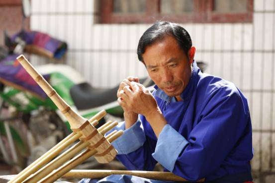 最難的是敲打簧片、割簧片、校單音、校和音這四個(gè)程序,最細(xì)致,最需要掌握的就是割簧片。把竹管的聲音和簧片的聲音全部調(diào)成一致,然后還要校正聲音。把單音校好以后還有雙管的,如果不把聲音校準(zhǔn),雙管就會(huì)和不起來(lái),吹起來(lái)也不好聽(tīng),就不能用。