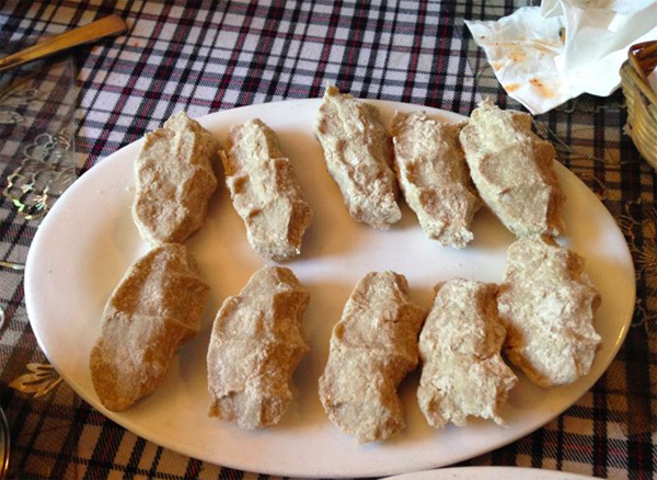 糌粑是藏族牧民傳統(tǒng)主食之一。“糌粑”是炒面的藏語(yǔ)譯音,它是藏族人民天天必吃的主食,在藏族同胞家作客,主人一定會(huì)給你雙手端來(lái)噴香的奶茶和青稞炒面,金黃的酥油和奶黃的“曲拉”(干酪素)、糖疊疊層層擺滿(mǎn)桌。糌粑是將青稞洗凈、晾干、炒熟后磨成的面粉,食用時(shí)用少量的酥油茶、奶渣、糖等攪拌均勻,用手捏成團(tuán)即可。它不僅便于食用,營(yíng)養(yǎng)豐富、熱量高,很適合充饑御寒,還便于攜帶和儲(chǔ)藏。