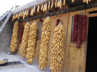 羌族人在自家小院里儲存的食物